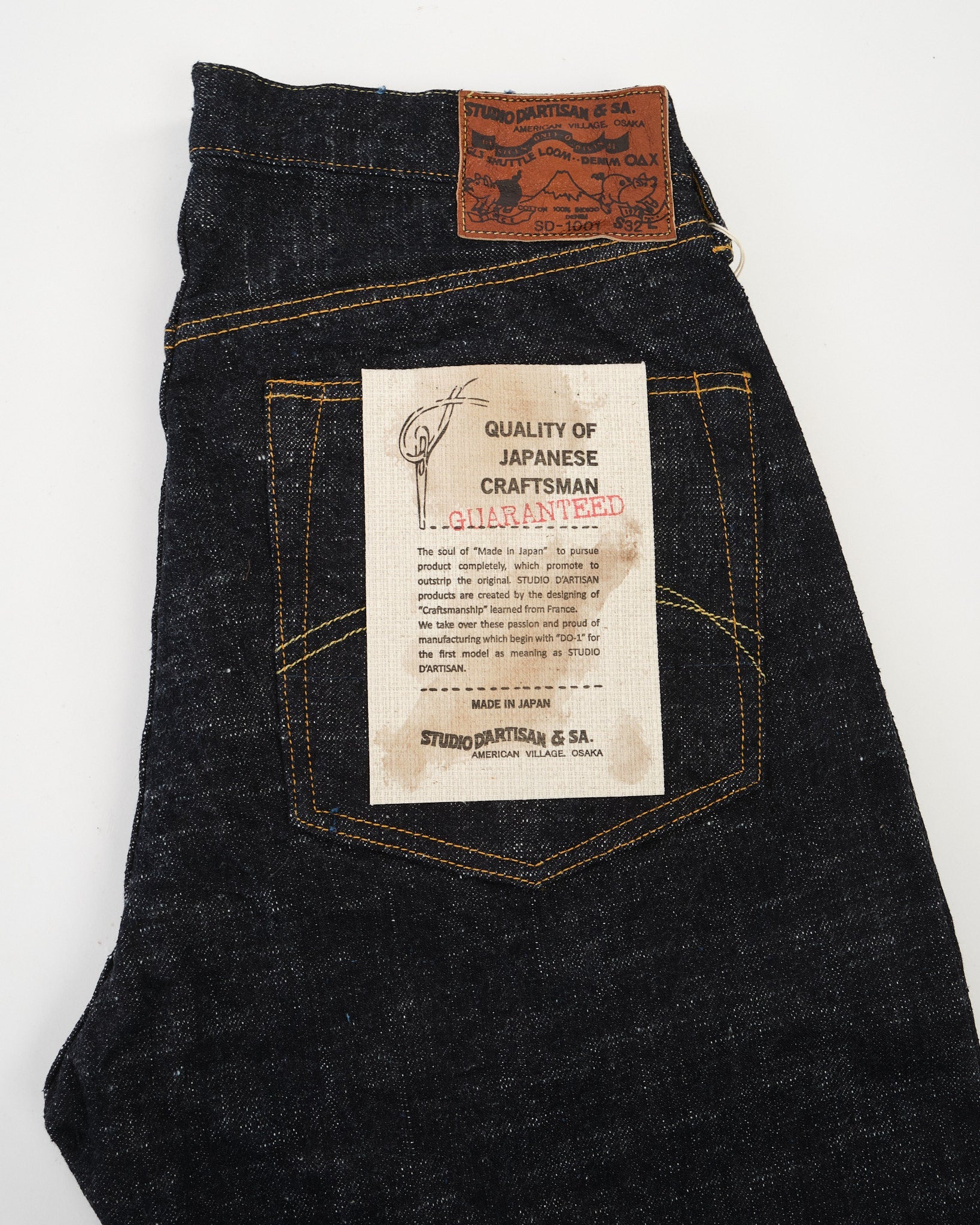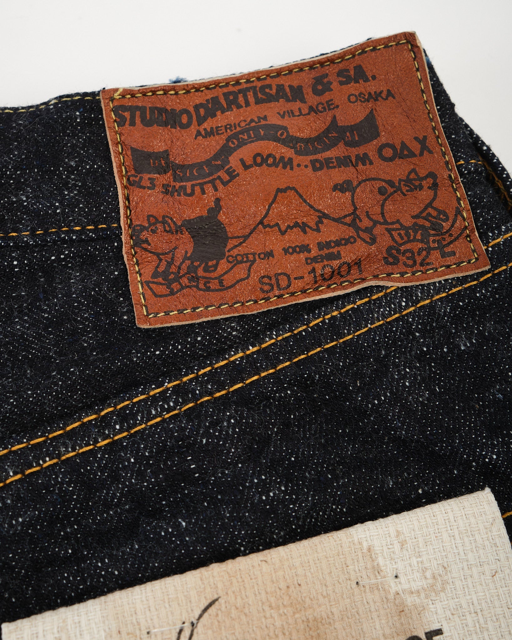 Los SD-1001 GL3 Regular Straight Jeans de STUDIO D'ARTISAN representan una fusión de la artesanía tradicional y la pericia moderna en denim. Diseñados para abrazar completamente las características únicas del denim de orillo GL3, estos jeans están tejidos en telares de lanzadera Toyoda GL3, resultando en una tela robusta y texturizada que los distingue del denim producido en masa.