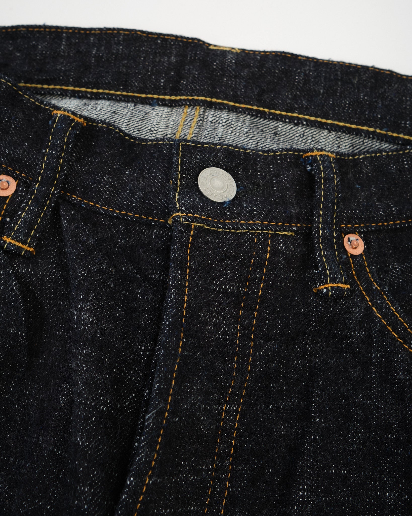 El corte recto regular proporciona una silueta atemporal, ofreciendo versatilidad para varios estilos. Con su color índigo profundo, desarrollado a través del teñido por cuerda tradicional, estos jeans envejecen bellamente, revelando desvanecimientos únicos con el tiempo.