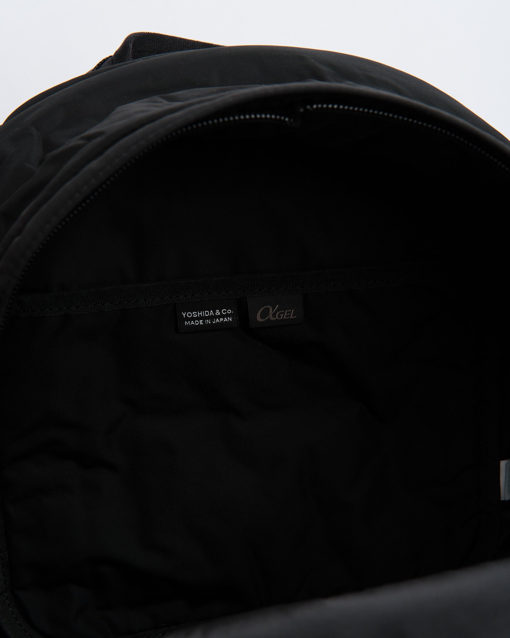 La mochila de dos capas cuenta con un compartimento principal de gran capacidad con un práctico bolsillo colgante para organización. El lado posterior incluye un bolsillo acolchado que puede sostener una PC de 13 pulgadas. Para mayor comodidad, αGEL se coloca en el exterior del arnés para evitar que se resbale del hombro.