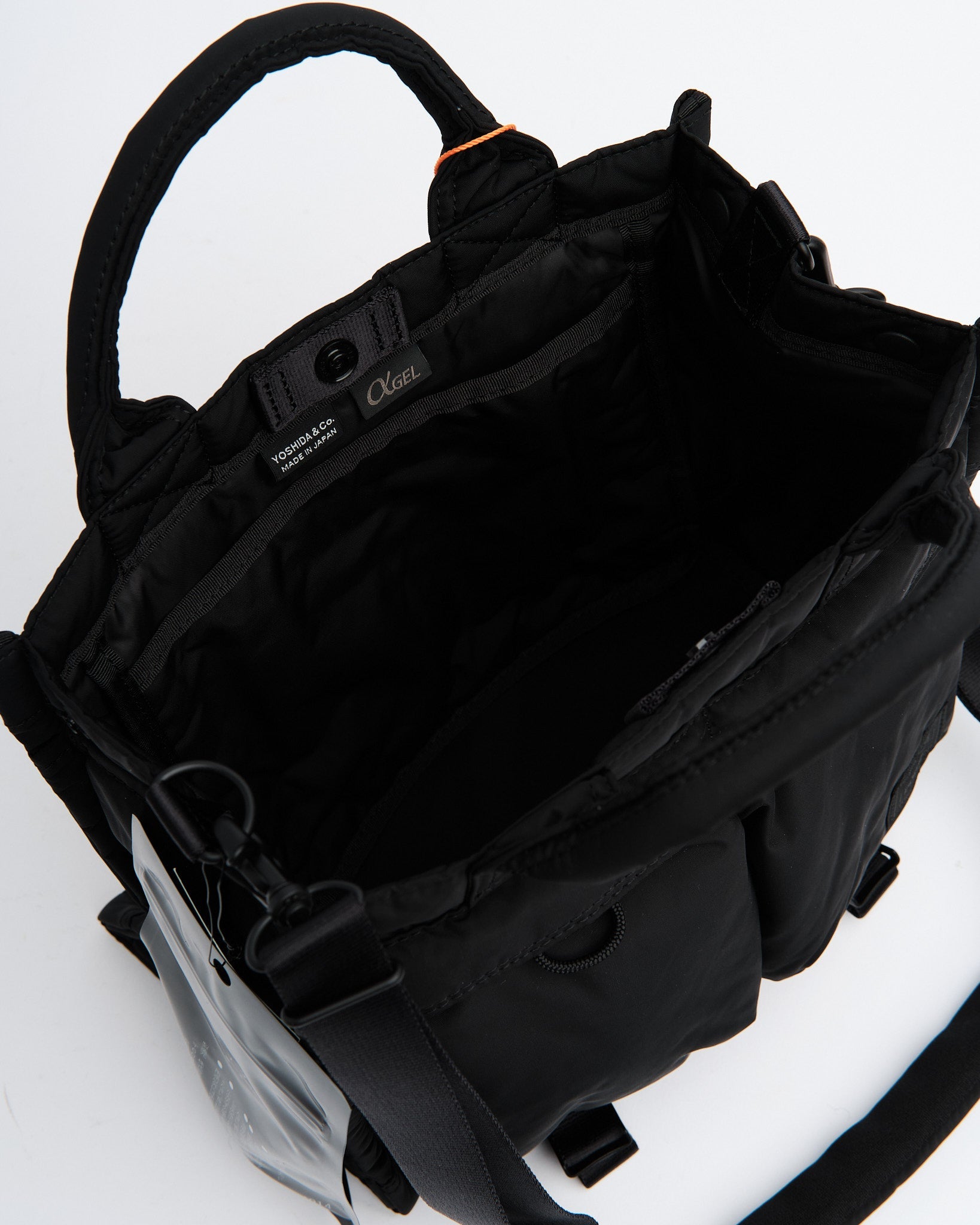 El bolso cuenta con αGEL, un material multifuncional utilizado en el asa, el arnés y las almohadillas de hombro. Este material suave y similar al gel dispersa la presión ejercida por el peso, reduciendo la fatiga y el estrés, y asegurando comodidad al llevarlo. Además, el bolso incluye saquitos infundidos con más de 10 fragancias derivadas naturalmente, principalmente sándalo, creadas por el establecido desde hace mucho tiempo Koroho Shoeido de Kioto, ofreciendo una experiencia calmante y curativa con cada sacudida.