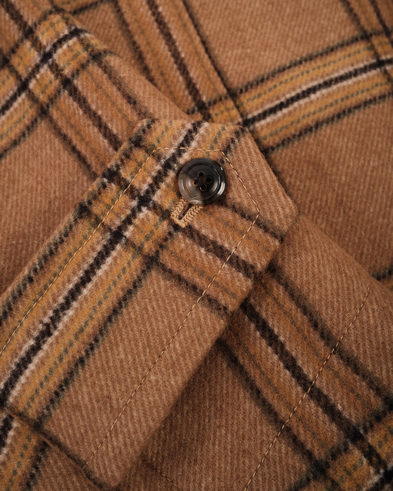 The Traveller Coat is one of Kaptain Sunshine’s signature outerwear pieces, showcasing the brand’s commitment to refined tailoring and exceptional fabrics. Crafted from a reverse double cross melton woven at high density using ultra-fine 16.5 micron Super 140’s wool, it offers a rare balance of lightness, structure, and softness. The fabric’s subtle sheen and gentle drape elevate its timeless silhouette, making it a versatile piece for both travel and daily wear. Made in Japan with meticulous craftsmanship, this coat embodies quiet luxury and enduring quality.