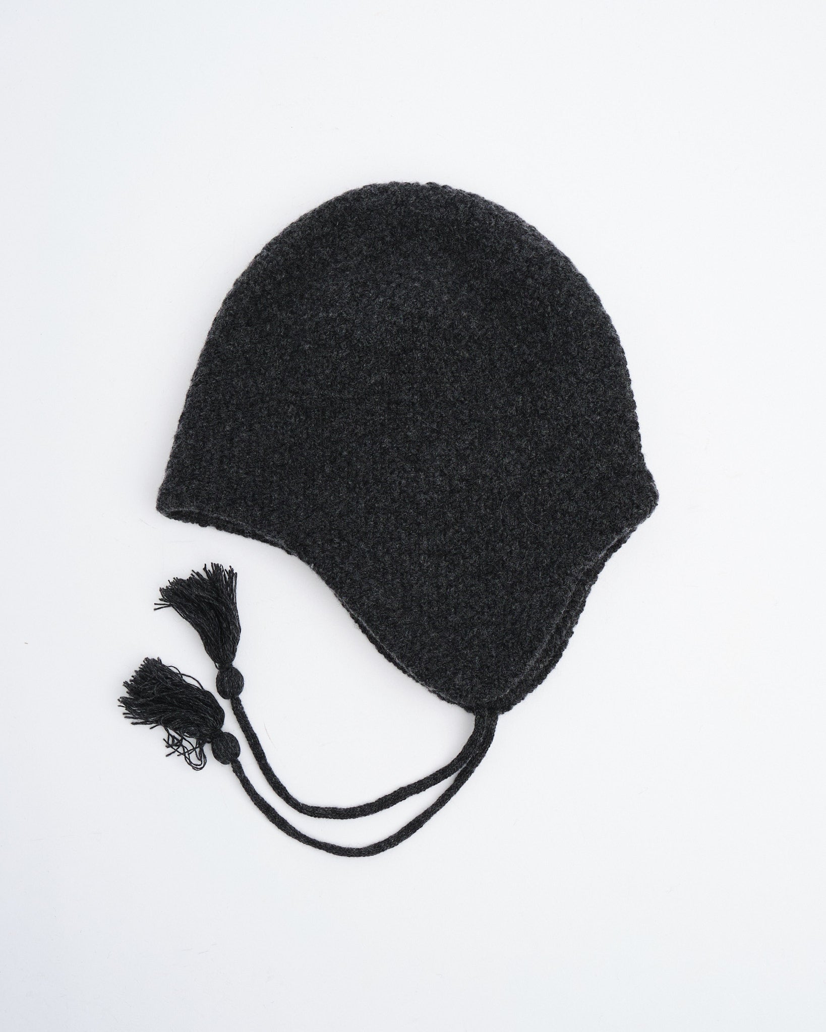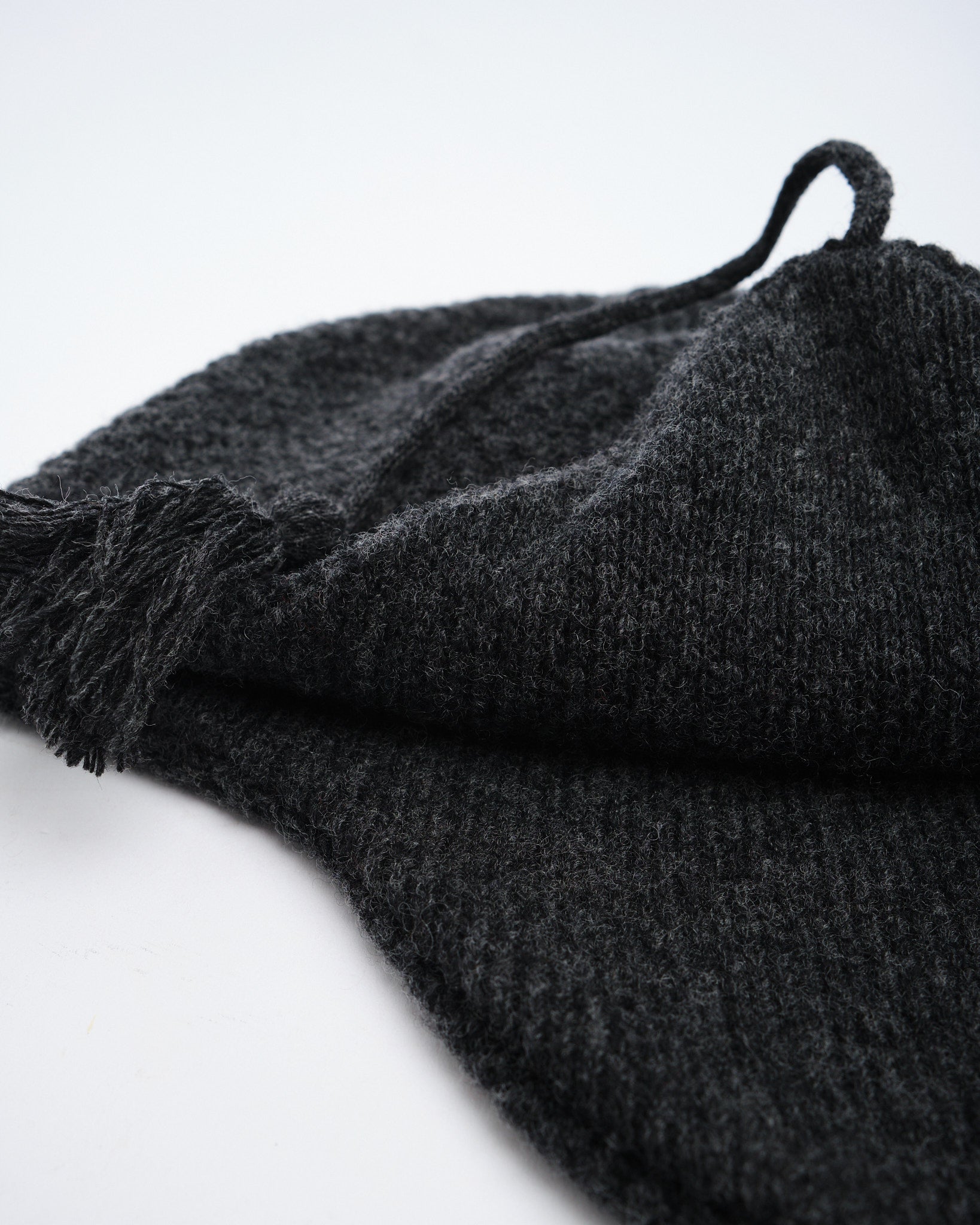 The Trek Beanie in Charcoal by Found Feather delivers warmth, structure, and subtle outdoor character. Made in Japan from a washable lambswool blend, it features a dobby cable knit pattern with a soft brushed interior for cozy wear. The 8.5 cm ear panels provide extra coverage, while self-yarn lace and tassels add classic detail. Designed with a single-panel construction and a unisex fit, it’s finished with a woven label and QR-coded care tag — the perfect mix of practicality and style.