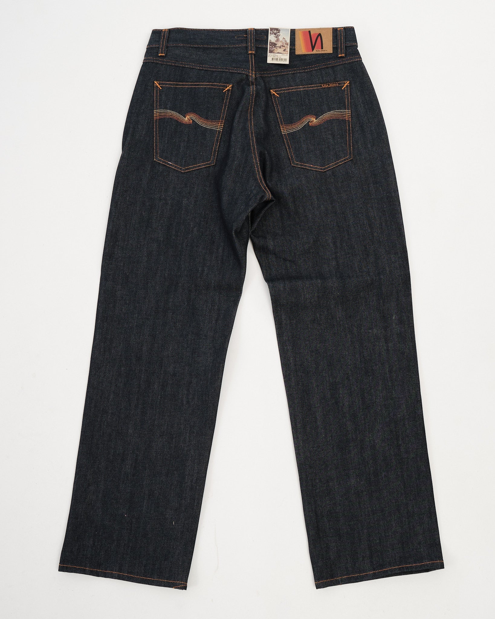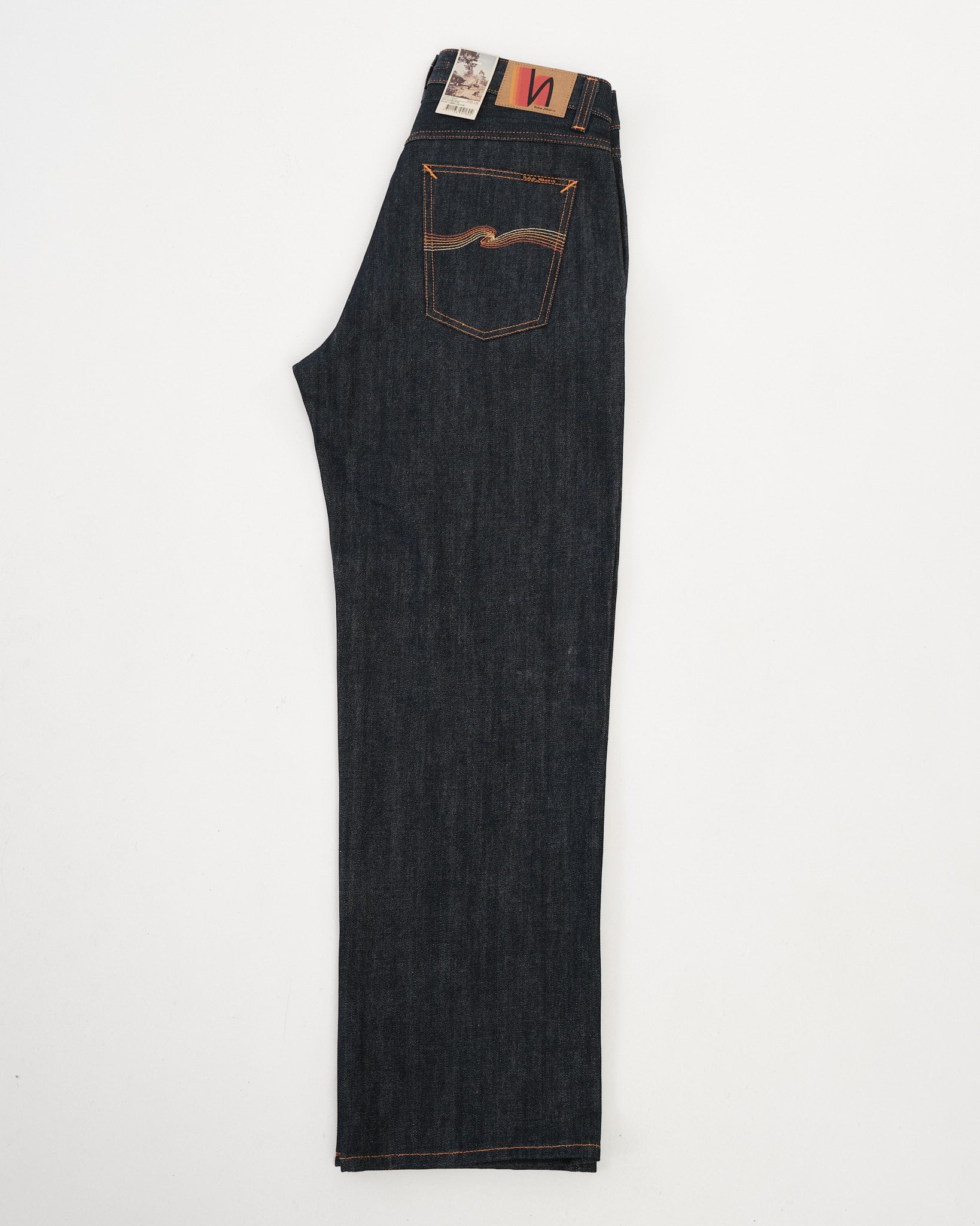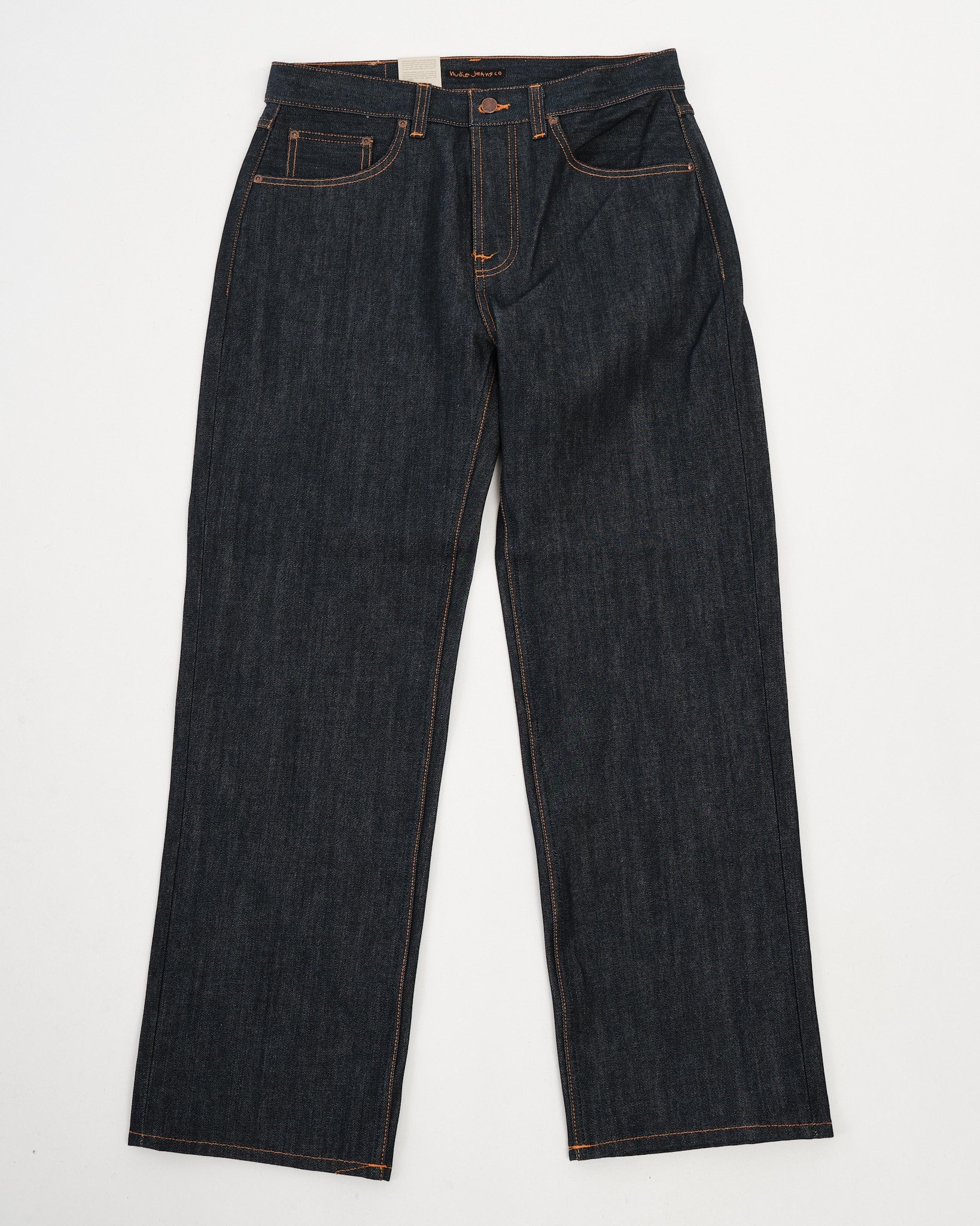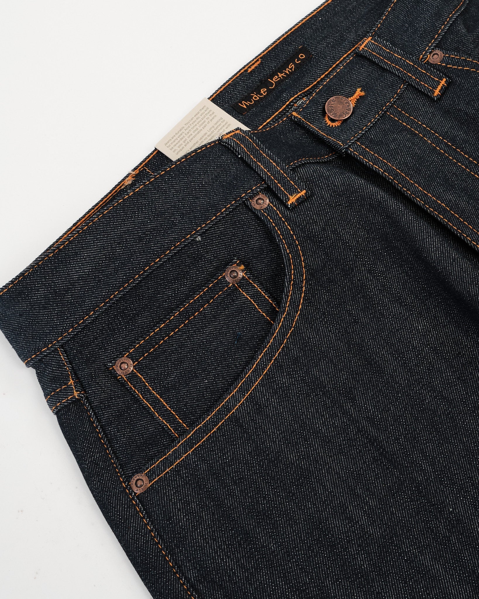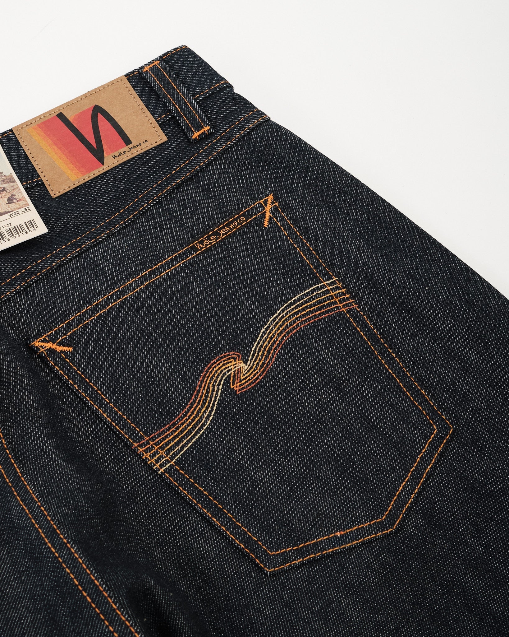 Meet Tuff Tony in Dry Sunburns — a statement jean that blends Nudie’s love for rigid denim with an eye-catching twist. Crafted from 14.2 oz regenerative organic cotton, this denim brings both durability and responsibility to the table. The standout feature? A gradient “sunburns” embroidery on the back pockets, adding a playful yet refined touch. With a loose fit, high waist, and wide leg, it’s built for those who like their jeans with personality and purpose. Finished with orange thread, copper trims, and Nudie’s signature jacron patch, this pair is ready to turn heads.