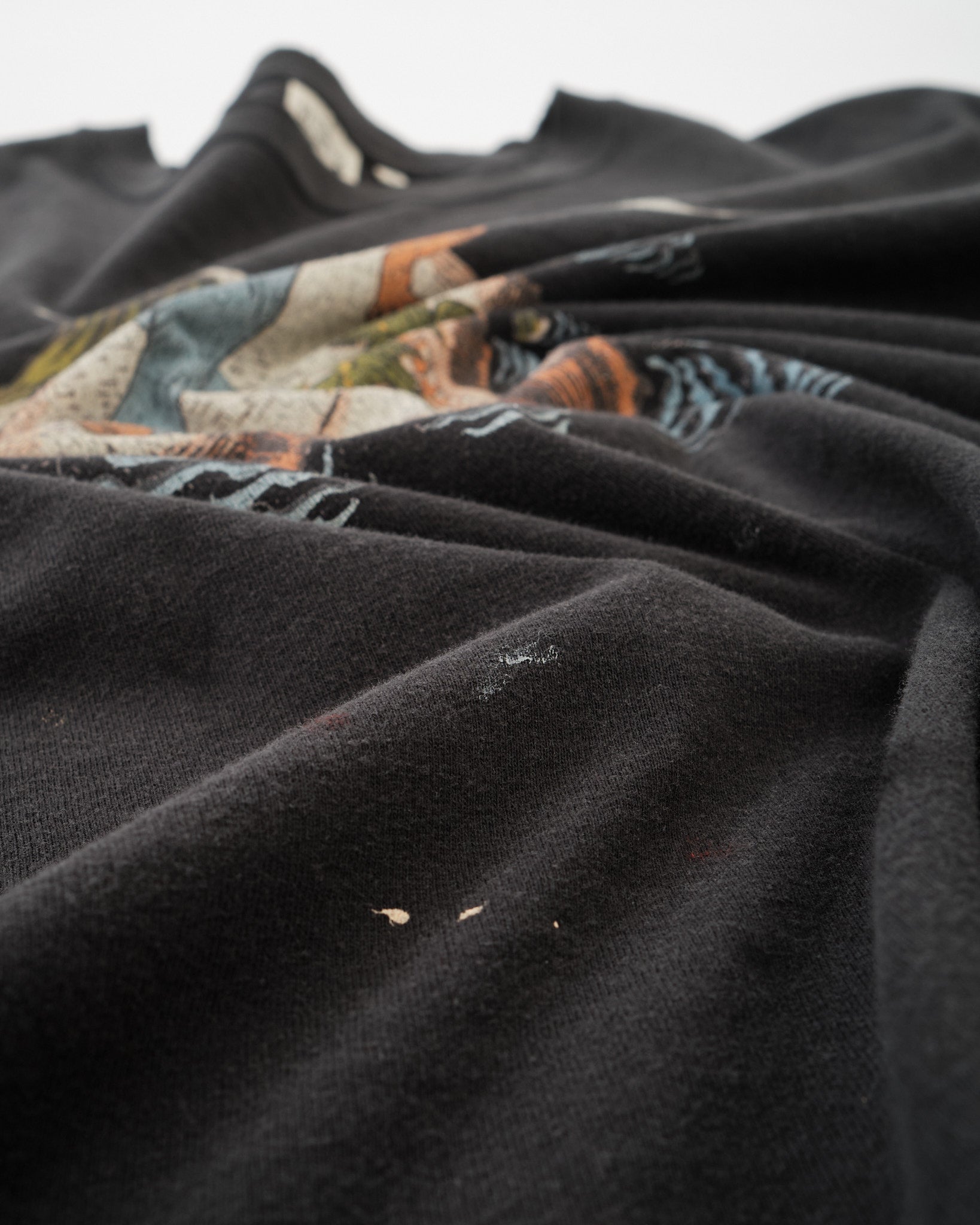 Contra una base negra lavada, los tonos se sienten apagados y equilibrados, permitiendo que el gráfico resalte de manera sutil. La silueta relajada hace que sea fácil de llevar por sí sola o en capas bajo una camisa o chaqueta.